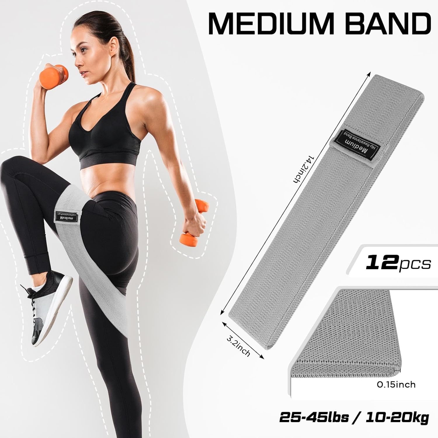 8 reviews for 12 Pcs Fabric Resistance Bands for Working Out Booty Workout Stretch Exercise Bands Non Slip for Legs Squat Resistance Loop for Women Men Starter Butt Hip Thigh Fitness