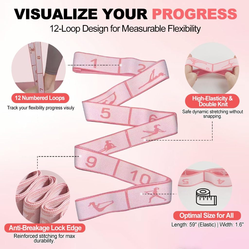 TRACK PROGRESS WITH NUMBERED LOOPS: See your flexibility improve visually! Unlike rigid static belts, our Stretchy Yoga Strap features 12 numbered loops, allowing you to track milestones (e.g., “I moved from Loop 4 to 6!”) and adjust intensity precisely. The unique elastic construction provides gentle “give,” making it safer for Hamstring stretching, ACL Rehab, and splits training.