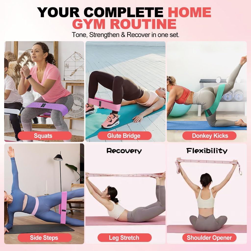 ACTIVATE, TONE & RECOVER: Whether you are focusing on Injury Prevention or high-intensity Leg Days, this set adapts to you. Use the Hip Bands to activate your muscles before lifting. Post-workout, use the Flexibility Strap to release muscle tension. Ideal for dancers, runners, and seniors needing mobility support.