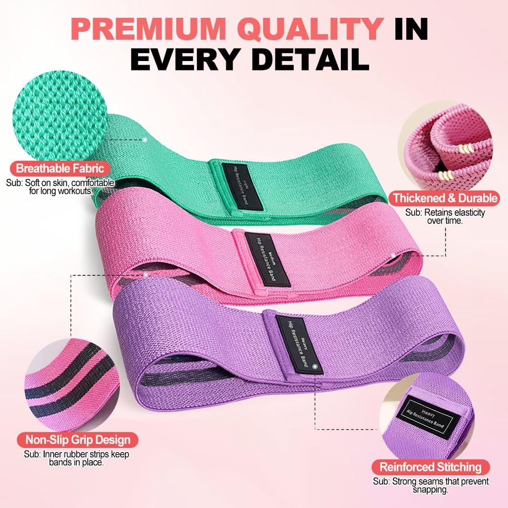 PREMIUM NYLON WEAVE – NO SLIPPING: Frustrated by rubber bands that snap or cheap cotton bands that fuzz? Our Fabric Workout Bands are crafted from a specialized Nylon & Latex blend. This material is smoother on bare skin, wider than competitors, and features robust inner Non-Slip grips to ensure they never roll up during your Squats, Hip Thrusts, or Booty bridges.