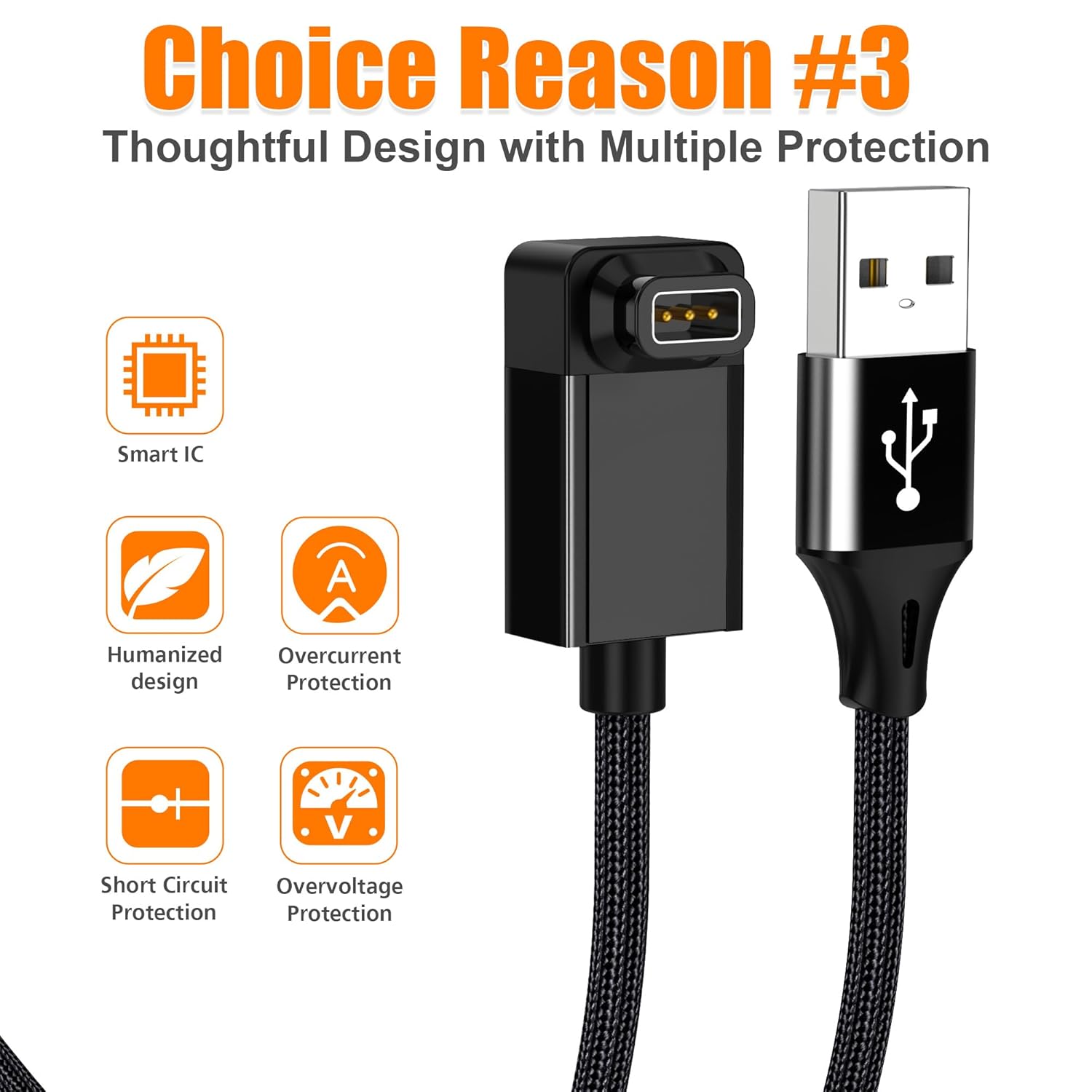 ⭕[Safe Charging & Stable Data Sync] Built-in intelligent protection module, double-sided plug, rigorous manufacturing process + EMI shielding ensures 100% safe charging & stable data sync. If you are not sure of the watch model, just compare with the shape of your watch charging socket, if the shape is the same, you can use it with confidence.