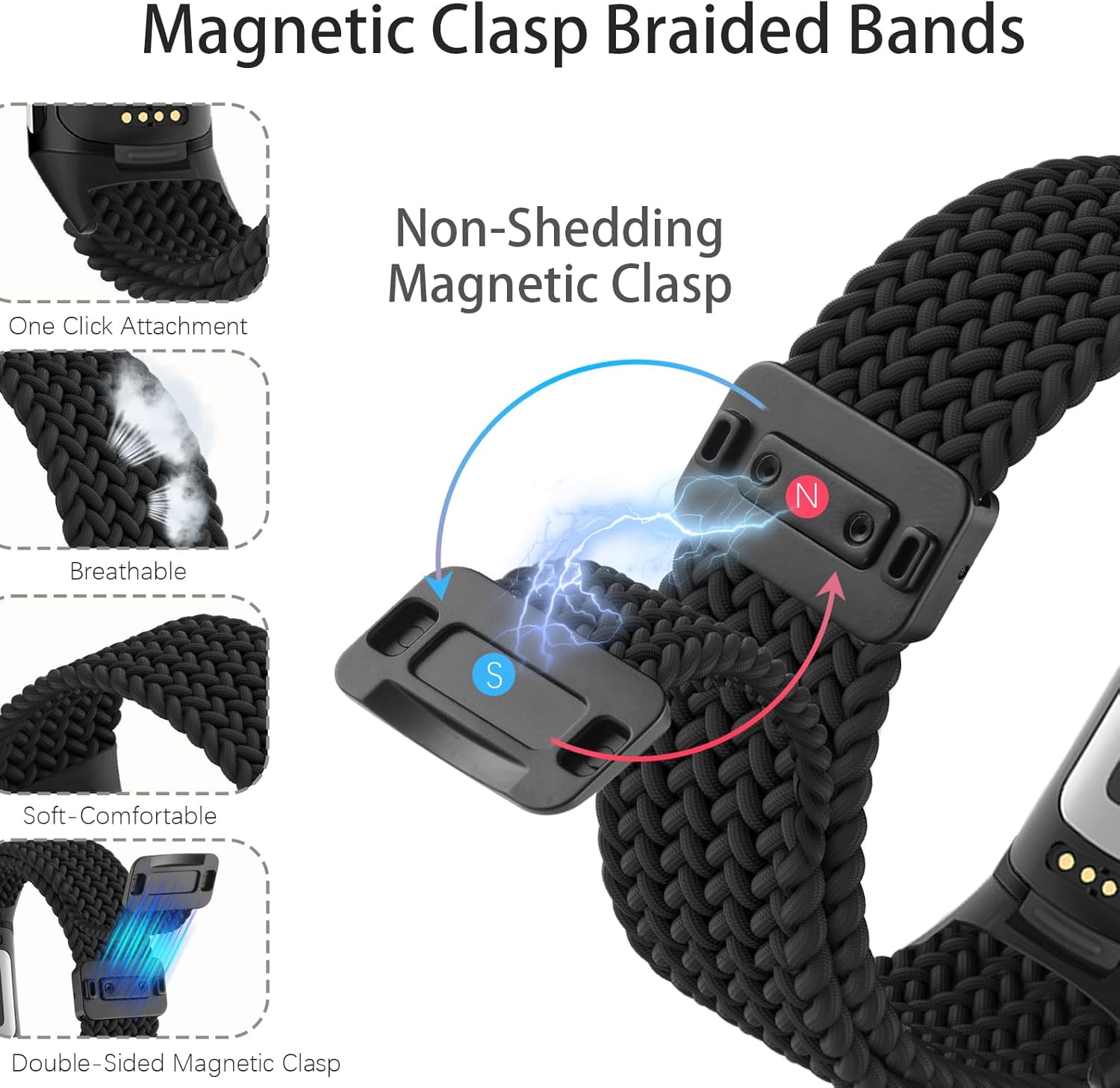 9 reviews for Huadea Magnetic Braided Nylon Compatible with Fitbit Charge 6 Bands/Fitbit Charge 5 Bands for Women Men, Soft Sport Stretchy Breathable Strap Replacement Wristband for Charge 6/Charge 5
