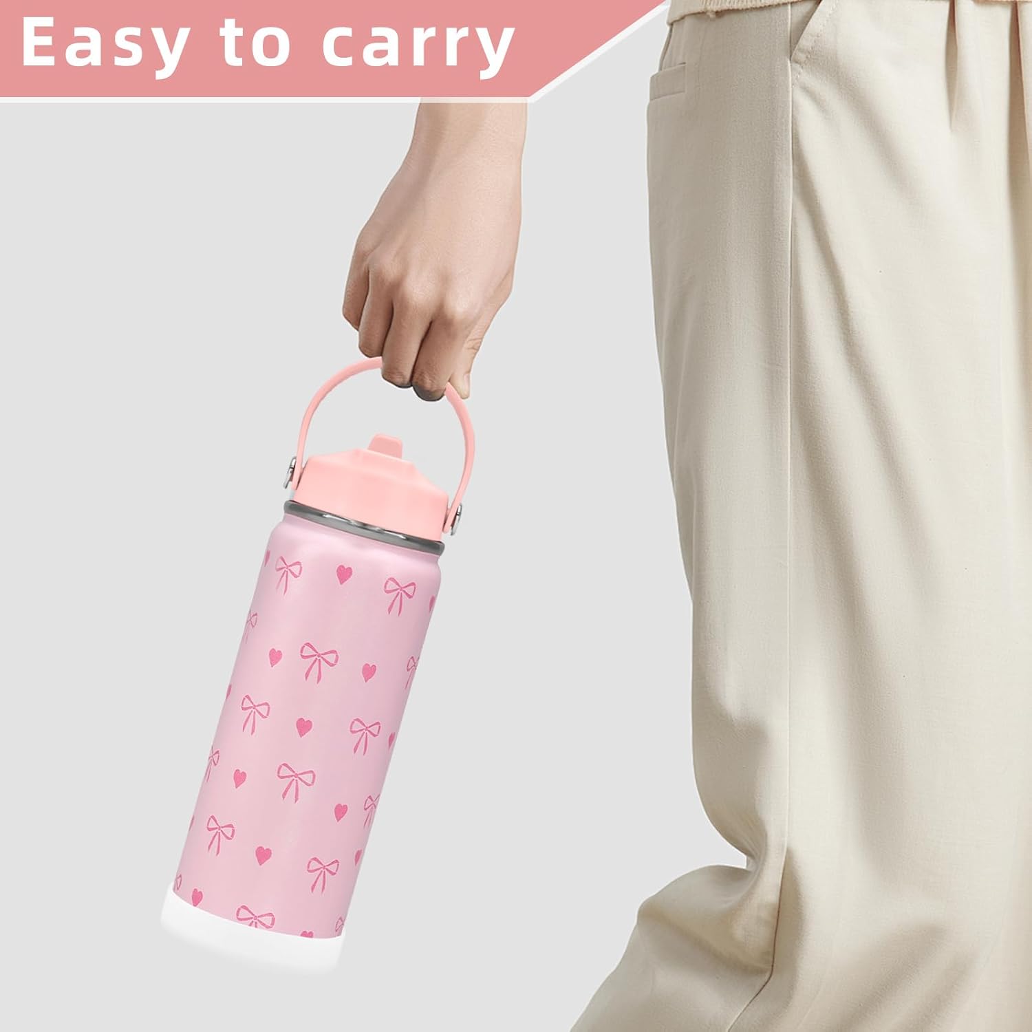 The flip-top straw lid enables one-handed sipping, while the built-in handle makes carrying a breeze—ideal for workouts, commutes, hiking, or daily use. The silicone boot wraps snugly around the bottle base, offering all-round protection against scratches, dents, and slips on any surface.