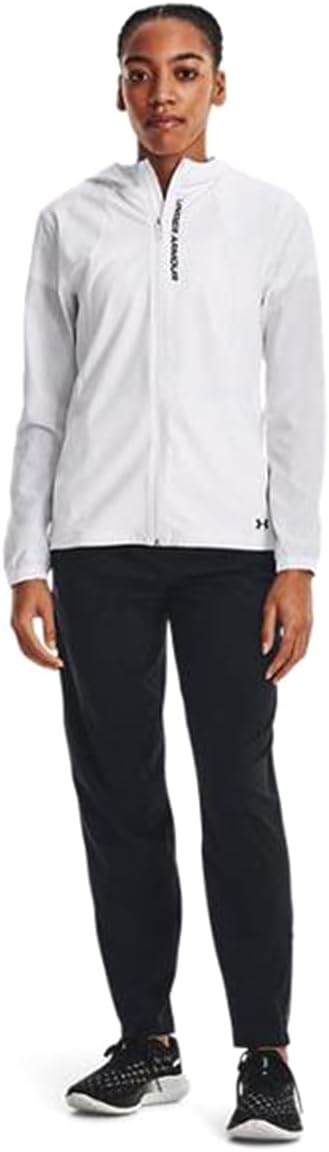 Meet the ultimate in performance gear: the Under Armour Women’s OutRun The Storm Jacket. This high-tech, super water-resistant jacket is specially designed for women who refuse to let bad weather hamper their fitness goals. Whether you’re a seasoned runner or a fitness enthusiast, this jacket offers superior protection from the elements while ensuring maximum comfort and flexibility. The OutRun The Storm Jacket is not just water-resistant, it’s super-water-resistant, meaning it offers superior protection and durability than your standard rain gear. This is all thanks to Under Armour’s innovative UA Storm technology, which repels water effectively without sacrificing breathability. The wind-resistant construction further protects you from harsh weather, ensuring you’re always ready to hit the trails, come rain or shine. But protection is not all this jacket offers. It’s also designed for maximum comfort and flexibility. The durable, lightweight stretch-woven fabric enhances mobility and comfort, ensuring you can move freely and comfortably during your workouts. The 4-way stretch material moves better in every direction, and back vents add breathability, keeping you cool and comfortable even during intense workouts. The jacket also features secure, zip hand pockets with a right-side interior media pocket, allowing you to store your essentials safely. Reflective details ensure visibility during low-light runs, enhancing your safety. The jacket uses a fluorine-free water repellent treatment, aligning with eco-friendly practices. The fit is streamlined, ensuring it’s not too tight or too loose, just the perfect fit for active women. The style is sleek and modern, with encased elastic cuffs adding to the overall aesthetic appeal. The jacket is made from a blend of 87% Polyester and 13% Elastane, promising durability and longevity. The jacket is easy to care for, requiring machine wash in cold water with like colors